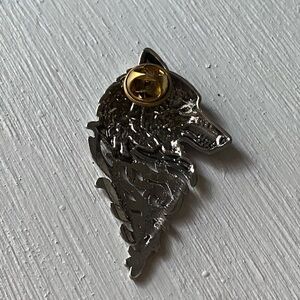 Elegant wolf head brooch. Intricate design. Perfect for any outfit.