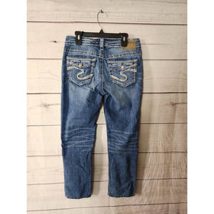 Silver Womens Aiko Capri Jeans Blue Distressed Stone Wash Low Rise Denim 26x22