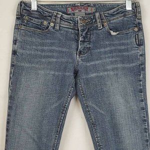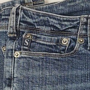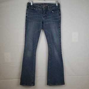 Silver Women's Boot Cut Jeans Blue Stretch Medium Wash Whiskered Pockets Denim 28