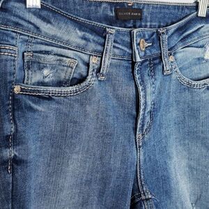 Silver Women's Distressed Mid Rise Suki Skinny Jeans size 27