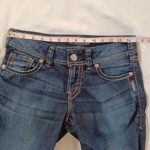 Silver Suki Cropped jeans in good pre-owned condition. There is a snag on the back of one pants leg. See photos. No other flaws noted.