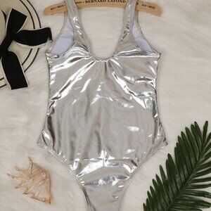 Silver Women's Swimsuit With Metallic Fabric