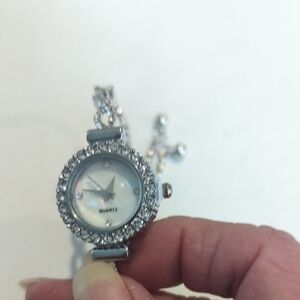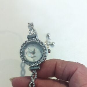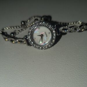 Elegant silver women's watch featuring sparkling crystal accents. Perfect for adding a touch of glamour to any outfit.