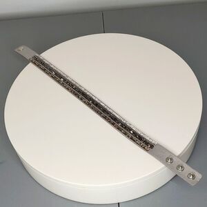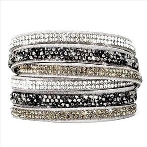 Beautiful Rhinestone bracelet punctuated with a medley of glittering Swarovski elements just in time for the holidays or chic office wear. Sleek micro-fiber bracelets wrap and snap to 3 different sizes.