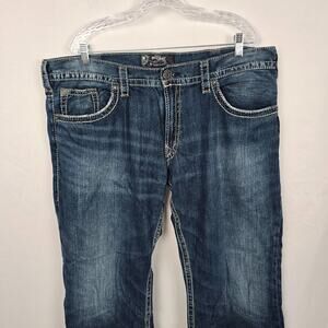Silver Zac Flap Straight Jeans Men's 40 x 28 (tag reads 40x30) Blue Dark Wash