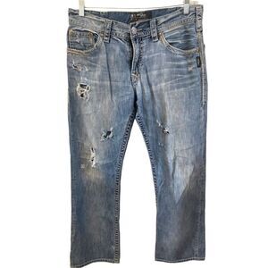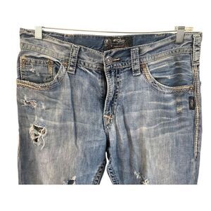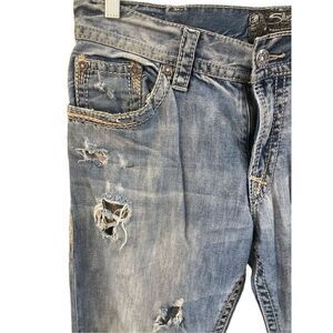 Silver Zac Jeans Distressed Destroyed Buckle Straight Preppy Embroidered Ripped