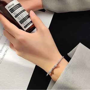 Silver Zircon Bow Knot Bracelet, Adjustable, Women’s, Minimalist, Jewelry