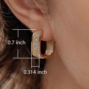 Silver Zircon Diamond White Gold Plated Pave Square Hoop Minimalist Earrings