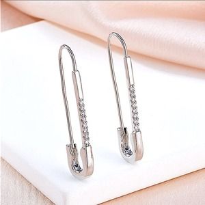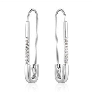 Silver Zircon Safety Pin Earrings, Minimalist, Punk, Gift For Teenager