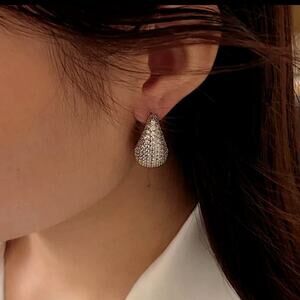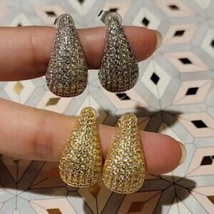 Luxury white gold plated water drop zircon earrings. Also available in gold in different listing.