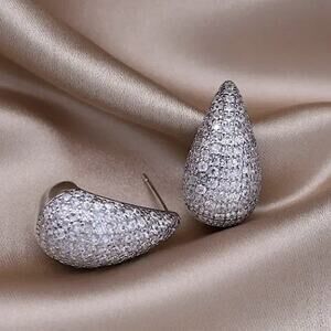 Silver Zircon Water Drop Earrings Luxury Exquisite Tear White Gold Plated G…
