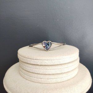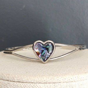 Silver abalone shell heart cuff bracelet