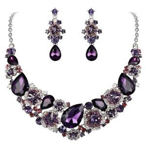 Silver and Amethyst Austrian Crystal Camellia Flower Necklace and Earrings Set