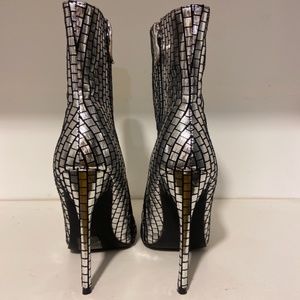 Step out in style with these stunning silver and black ankle boots. Perfect for any occasion, these boots offer a chic and modern look.