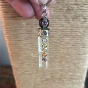 This exquisite necklace features a clear crystal point, artistically wire-wrapped and adorned with dark beads, all suspended from a sleek silver chain. The natural variations in the crystal ensure each piece is unique, adding a touch of elegance to any outfit.