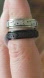 Set of two rings featuring moon and stars design. One ring is silver with glittery accents. The other is black with glittery accents. Perfect for couples. The middle of the rings spin to help reduce anxiety