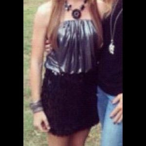 Fabulous silver and black dress. The bottom has sequins. Size M. Excellent condition.