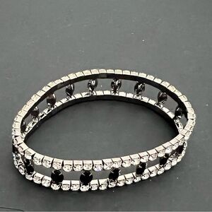 This elegant bracelet features a stunning combination of silver and black rhinestones perfect for any occasion. Its sleek design adds a touch of sophistication to your outfit.