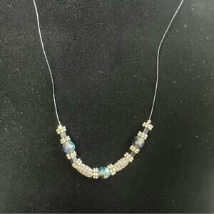 Elegant silver and blue beaded jewelry set perfect for any occasion. Features intricate silver detailing with striking blue accents.