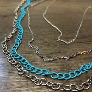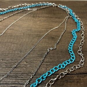 Elegant silver and blue chain necklace perfect for any occasion. Add a touch of sophistication to your outfit.