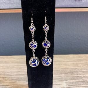 Elegant silver dangle earrings with blue accents. Perfect for any occasion.