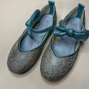 Chic Princess flats adorned with silver rhinestones and a blue bow. Ideal for a stylish touch. Like new barely worn.
