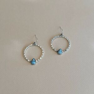 Boho silver earrings featuring a striking blue teardrop design. Perfect for adding a touch of sophistication to any outfit.