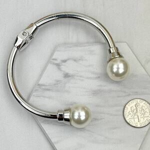 Silver and Cream Pearl Hinged Cuff Bracelet