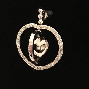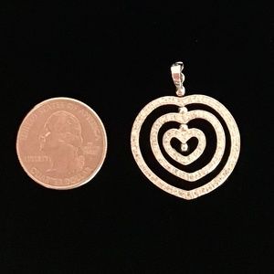 Beautiful silver pendant with crystal inlay. All three hearts are movable and spin. Dazzling statement piece!