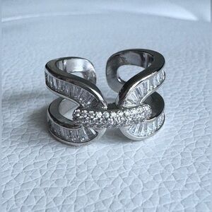 Silver and Diamond Baguette Geometric Statement Ring Adjustable New