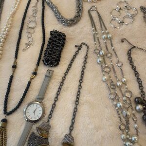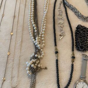 Great collection of costume jewelry with a variety lengths and styles. Great bead work for the jewelry maker in you. May need a little cleaning up, but still very wearable. This is a great bargain. I’ve spent hundreds through the years on this collection. Firm on price.