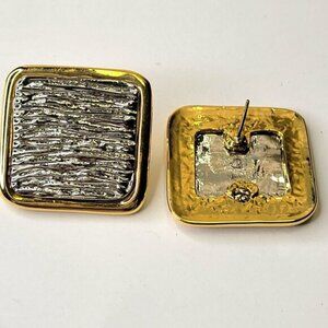 Dazzling Textured Silver tone Earrings framed in a gold tone