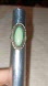 This elegant silver ring features a stunning green oval centerpiece, perfect for adding a touch of sophistication to any outfit.
