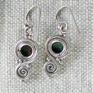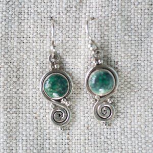 Silver and Green Stone Dangle Earring