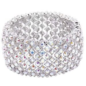 Silver and Iridescent AB Austrian Crystal Tennis Stretchable Bracelet Bangle