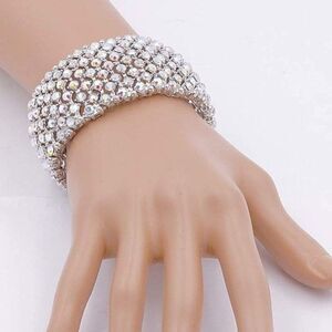 Brand New - Daring and Bold Round Cut Austrian Crystal Tennis Stretch Adjustable Bridal Wedding Party Bangle Bracelet