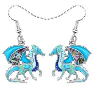 Silver Tone and Multicolored Enamel Dangling Drop Mythical Fantasy Dragon French Wire Hook Earrings