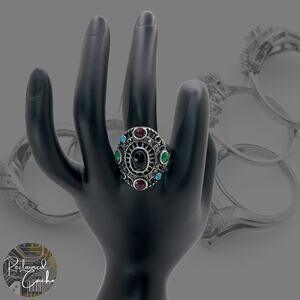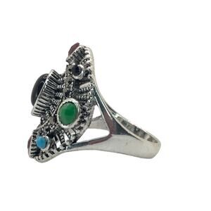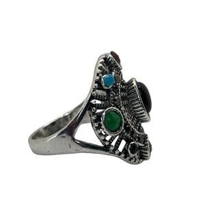 Silver and Multicolor Rhinestone Statement Ring - Size 10