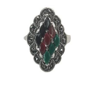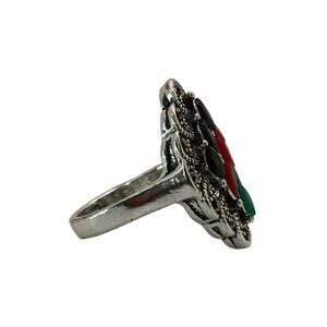 Silver and Multicolor Rhinestone Statement Ring - Size 7.5