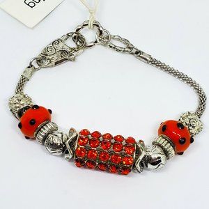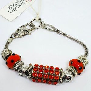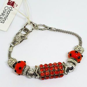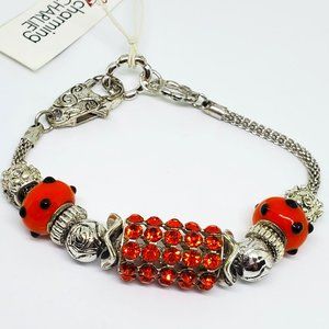 NWT Silver and Orange Rhinestone Beaded Charm Charming Charlie Bracelet