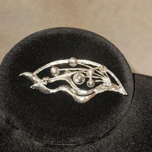 Silver and Pearl Brooch with versatile placement options. wavy design