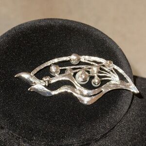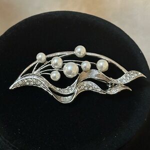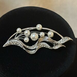 Silver and Pearl Brooch has versatile placement options. wavy design