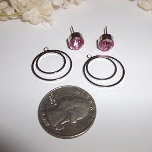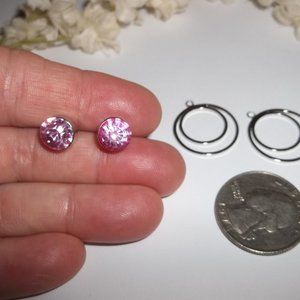 Silver and Pink Post Earring Jacket Sparkly Rhinestone Stud Funky Set Pair C171
