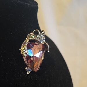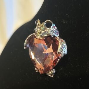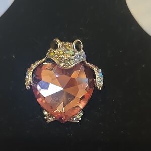 Charming frog brooch featuring a pink heart-shaped gem. Perfect for adding a playful touch to any outfit. Can be worn with Chain also. Chain sold seprately.