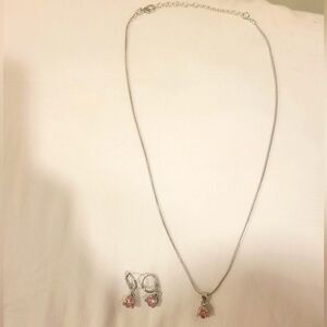 This elegant jewelry set features a stunning silver necklace and matching earrings, each adorned with a beautiful purple gemstone. Perfect for adding a touch of sophistication to any outfit.