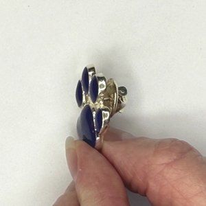 This silver and purple paw print lapel pin offers a stylish accessory for animal lovers. Its sturdy clutch back ensures secure attachment on clothing.