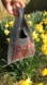 Stylish silver beaded handbag with red 'Thank You' text. Perfect for a chic look.