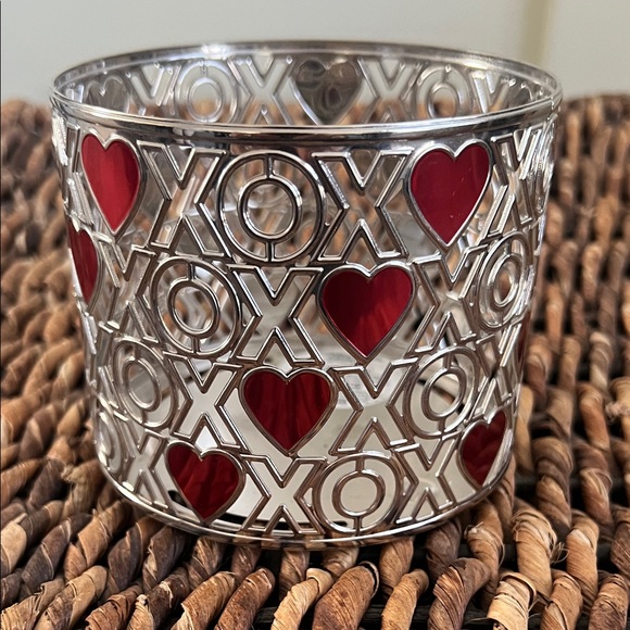 Add a touch of love to your home with this elegant silver and red XO candle holder. Perfect for creating a warm and inviting atmosphere.