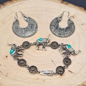 #BohoJewelry #ElephantBracelet #TribalStyle #MandalaEarrings #GypsySoul #FestivalStyle #VintageVibes #HandmadeLook #TurquoiseCharm #SpiritualStyle #PoshmarkFinds