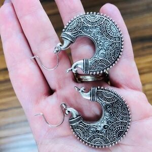 Channel your inner wanderer with this stunning boho jewelry set! Featuring a detailed tribal-style bracelet with charming elephant accents and turquoise-toned stones, paired with matching mandala-inspired crescent hoop earrings. The antique silver-tone finish brings an artisanal, vintage vibe perfect for festival season or everyday soul-filled style.